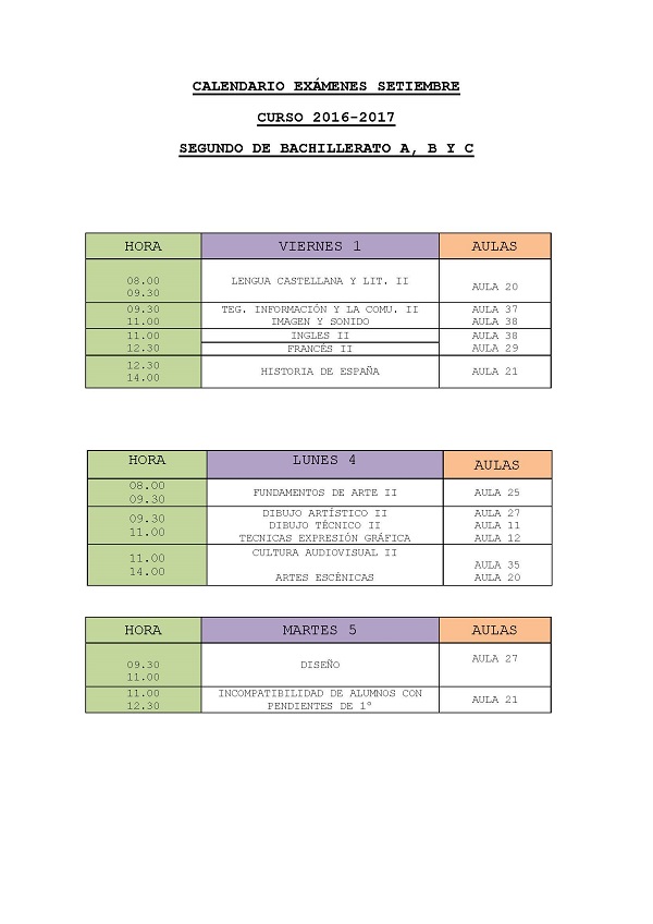 PRUEBAS EXTRAORDINARIAS SEPTIEMBRE 2º BACHILLERATO